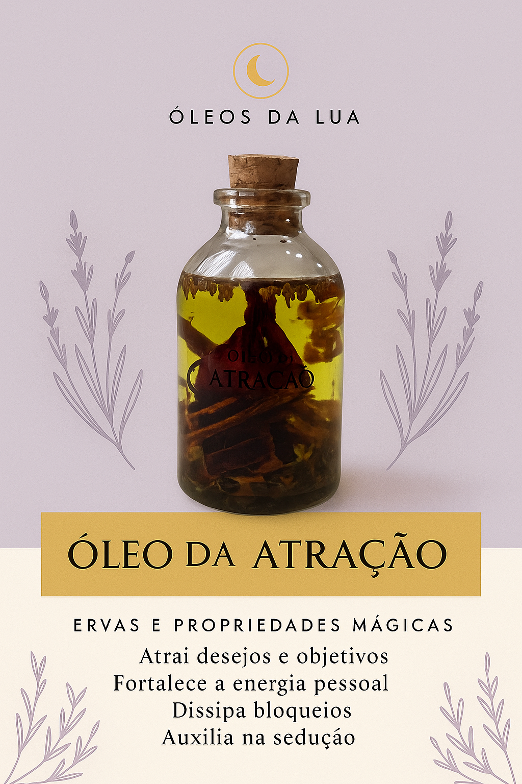 A Poção da Lua – Atração é um óleo ritualístico feito para despertar o teu magnetismo natural — aquele brilho feminino que não força, não implora, não persegue… apenas atrai.