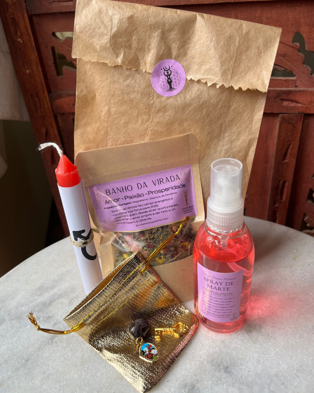 Um ritual completo, ritualístico e vibracional, preparado na força de Marte, planeta da ação, movimento e decisão — e no amor de Vênus, que abre caminhos para prosperidade, beleza e magnetismo feminino.